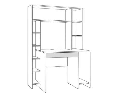 Стол компьютерный Комфорт 12.71 оснащен открытыми и закрытыми полками с распашным дверцами, ящиком и секцией для ПК.