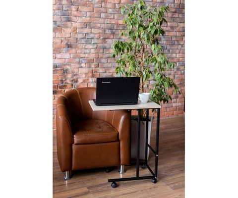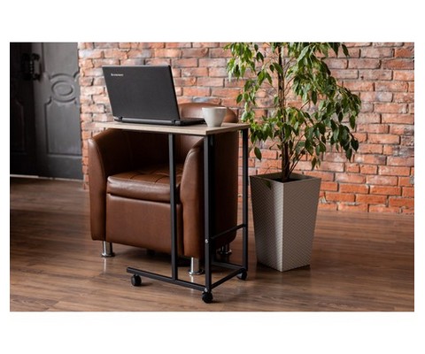 Благодаря компактным размерам и колесной базе стол легко перемещается, позволяя создать комфортную зону для работы с ноутбуком в любой комнате.
