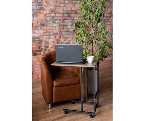 Благодаря компактным размерам и колесной базе стол легко перемещается, позволяя создать комфортную зону для работы с ноутбуком в любой комнате.