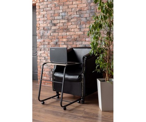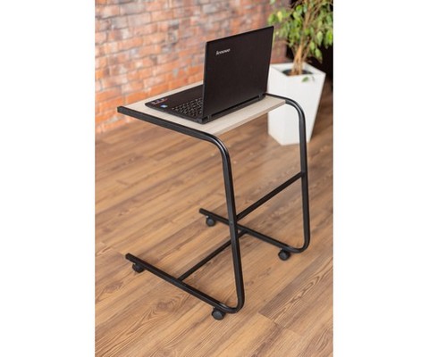 Благодаря компактным размерам и колесной базе стол легко перемещается, позволяя создать комфортную зону для работы с ноутбуком в любой комнате.