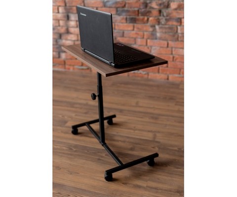 Благодаря компактным размерам и колесной базе стол легко перемещается, позволяя создать комфортную зону для работы с ноутбуком в любой комнате.