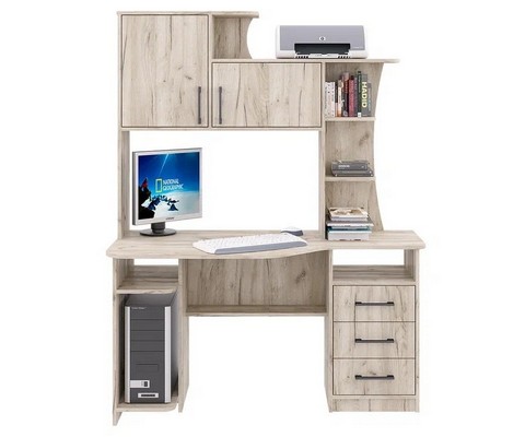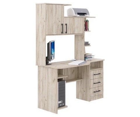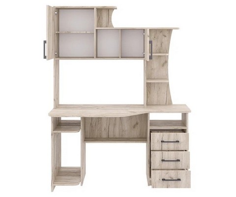 Стол компьютерный СК-19 крафт серый имеет фигурную столешницу и надстройку.