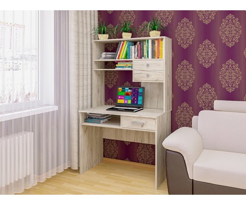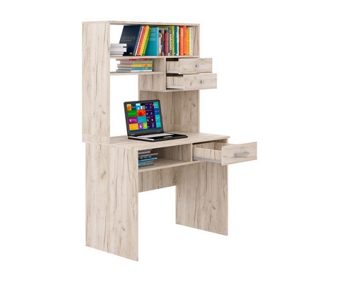 Компьютерный стол СК-41 - минималистичная и эргономичная модель с удобной надстройкой, которая в своей конструкции содержит: три открытые ниши и три ящика полного выдвижения (роликовые направляющие).
