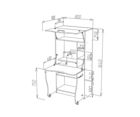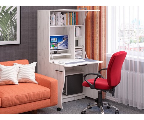 Оснащение: полка под монитор, системный блок, три вместительные ниши и четыре небольших полочки.