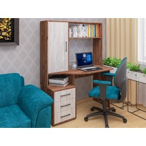 Стол компьютерный СК-55 имеет вместительную надстройку, радиусную столешницу и закрытый шкаф с полками.