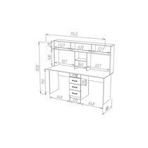 Данная модель оснащена: большой рабочей площадью, столешница прямая, разделительная тумба с четырьмя ящиками полного выдвижения (шариковые направляющие) и шесть вместительных ниш, верхняя часть надстройки образует дополнительную полку.