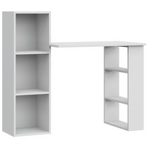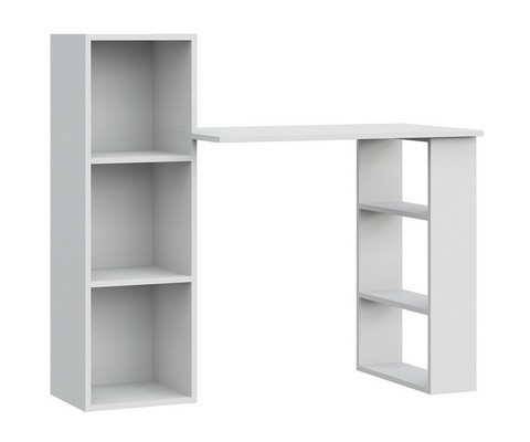 Просторная столешница, открытый шкаф-пенал и стеллаж с двумя полками.