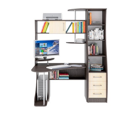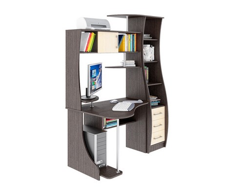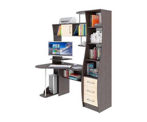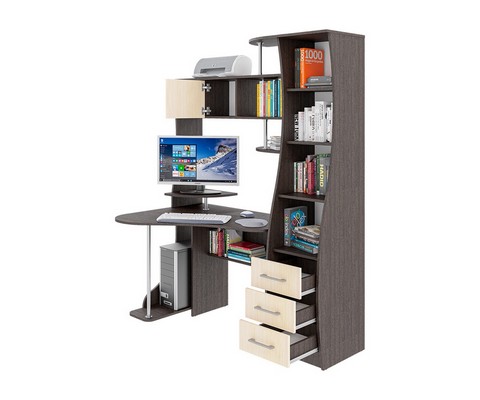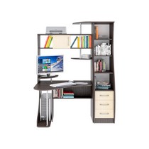 Стол компьютерный угловой с надстройкой и ящиками СК-34 (дуб венге/дуб молочный)