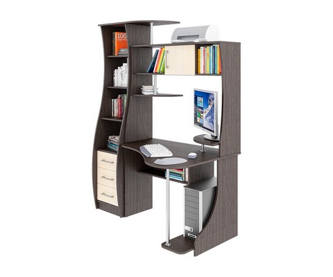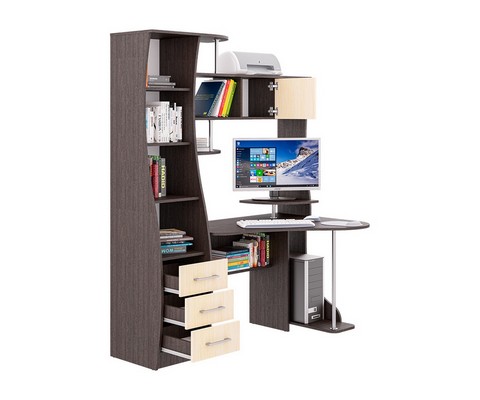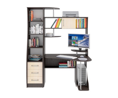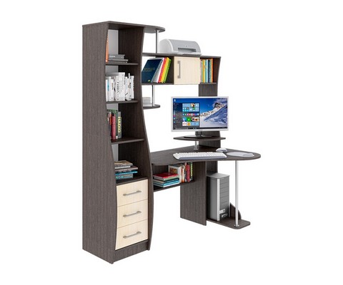 Стол компьютерный угловой с надстройкой и ящиками СК-34 (дуб венге/дуб молочный правый)