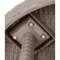 Благодаря использованию полипропилена с добавлением стекловолокна в качестве основного материала, стол под ротанг обладает высокой прочностью.