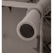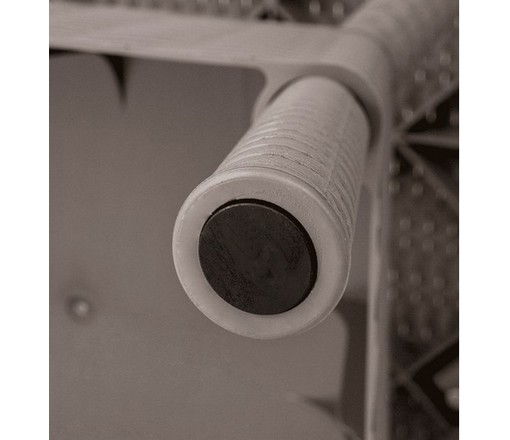Соединение между столешницей и ножками стола осуществляется при помощи надежных болтов и гаек, а сами гайки столешницы дополнительно закреплены в пластике для большей надежности и эстетичного вида.