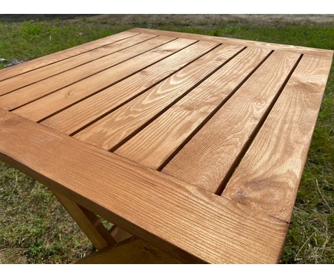 Характеристики: покрытие квадратного раскладного стола Дятел - атмосферостойкая пропитка на водной основе, лак.