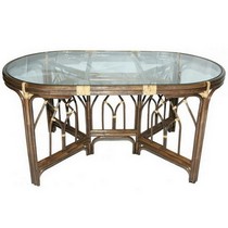 Каркас - натуральный ротанг, столешница - стекло.
