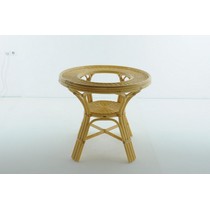 Каркас - натуральный ротанг, столешница - стекло.