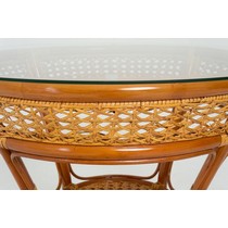 Материалы изделия: натуральный ротанг (каркас), стекло (столешница).