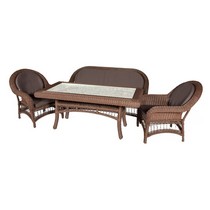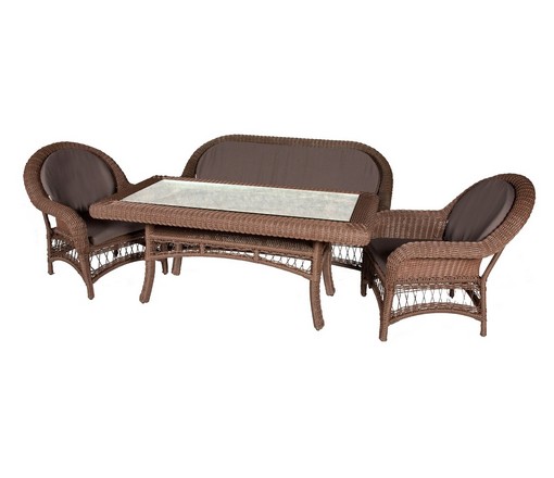 Материалы изделия: Каркас - сталь, плетение - искусственный ротанг, столешница - калёное стекло.