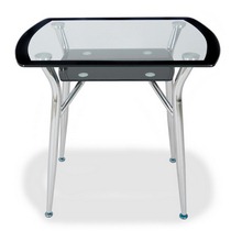 Ножки выполнены из хромированного металла, столешница из стекла с черной окантовкой.