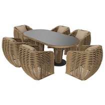 Материалы изделия: сталь (каркас, ножки), Polyrattan (лоза), стекло (столешница).