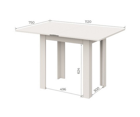 Благодаря удобному и надежному механизму разложения ширина столешницы увеличивается с 75 до 112 см.
