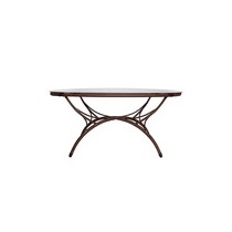 Стол, выполненный в привлекательном коричневом оттенке, имеет овальную столешницу длиной 160 см, что позволяет удобно разместить большую компанию для трапезы или отдыха на свежем воздухе.