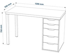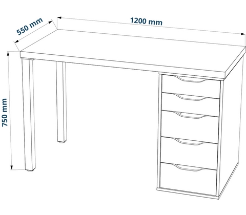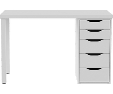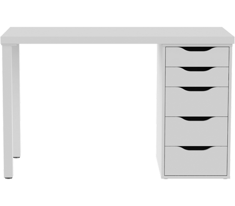 Стол комплектуется столешницей, двумя металлическими ножками и тумбой под столешницу с пятью выдвижными ящиками.