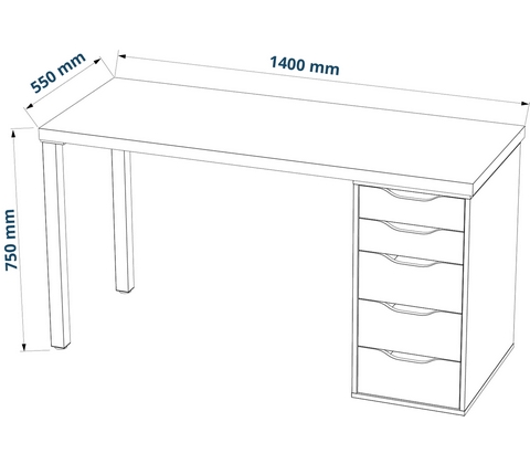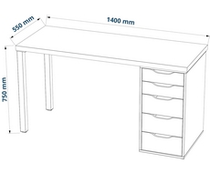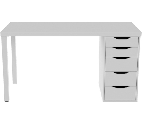 Стол комплектуется столешницей, двумя металлическими ножками и тумбой под столешницу с пятью выдвижными ящиками.