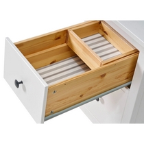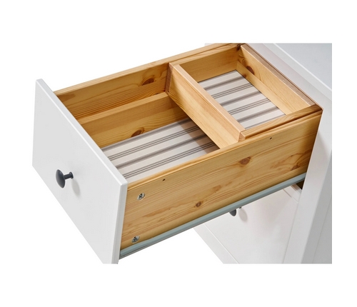 Верхний ящик оснащен съемным деревянным контейнером для удобного хранения мелочей.
