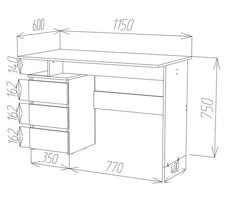 Универсальная сборка позволяет собрать стол в 2 вариантах: ящики слева и ящики справа.
