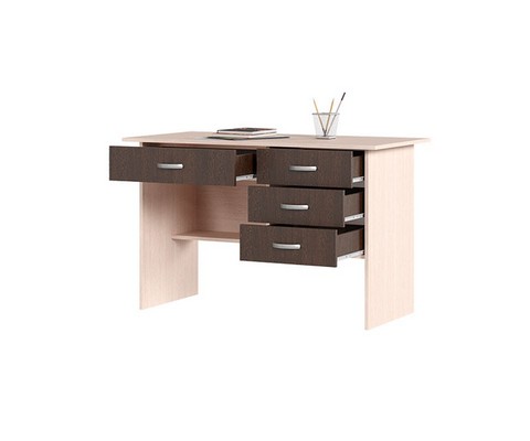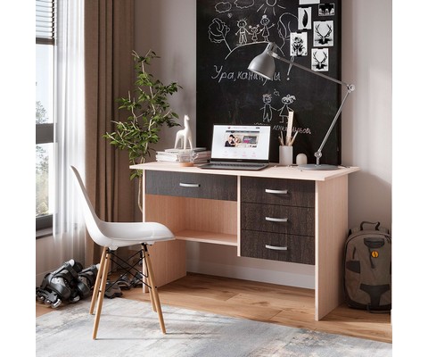 Вмещает в себя: Один ящик под столешницей, тумбу с тремя выкатными ящиками.