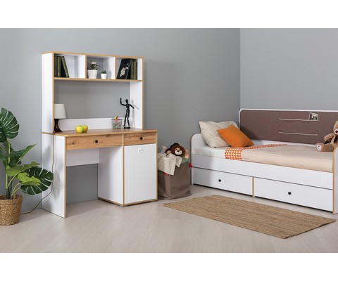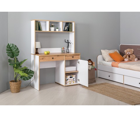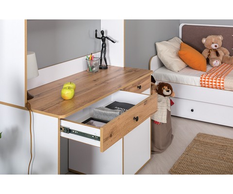 Стол письменный Вуди 12.42 (белый премиум, дуб золотой)