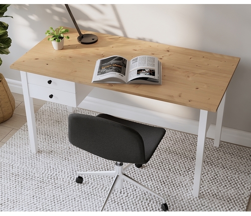 Письменный стол Вухтым с белым корпусом и светло-коричневой столешницей – это стильное и практичное решение для организации рабочего пространства, сочетающее в себе функциональность и природные мотивы.