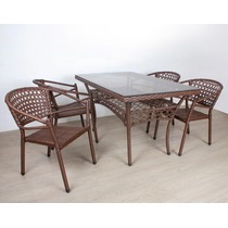 Материал: каркас - металл с порошковым покрытием, плетение - искусственный ротанг, столешница - закаленное стекло.