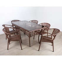 Материал: каркас - металл с порошковым покрытием, плетение - искусственный ротанг, столешница - закаленное стекло.
