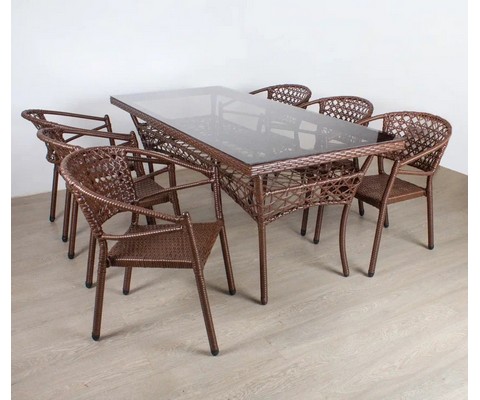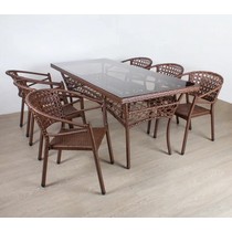 Материал изделия: каркас - металл с порошковым покрытием, плетение - искусственный ротанг, столешница - закаленное стекло.