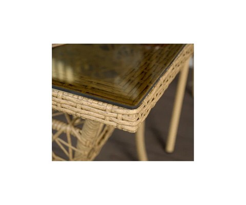 Материал изделия: каркас - металл с порошковым покрытием, плетение - искусственный ротанг, столешница - закаленное стекло.