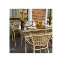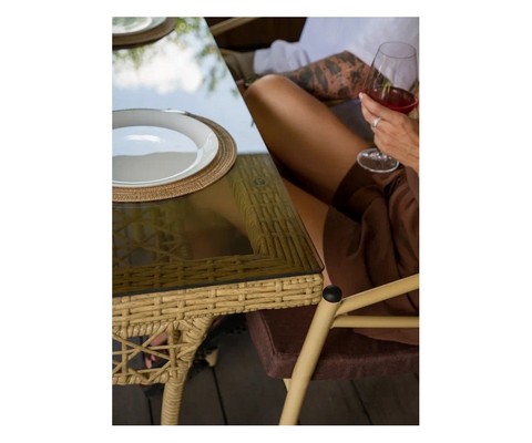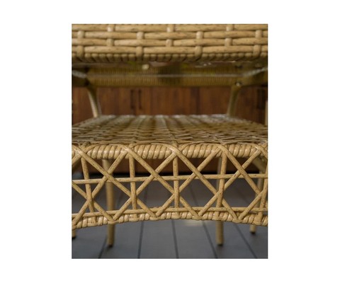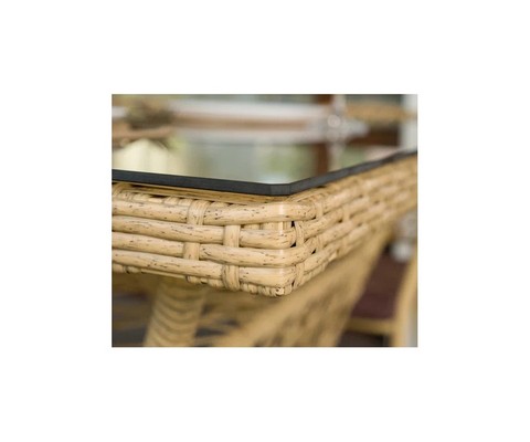 Искусное плетение из искусственного ротанга придает столу привлекательный внешний вид.