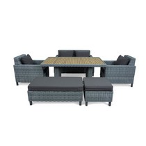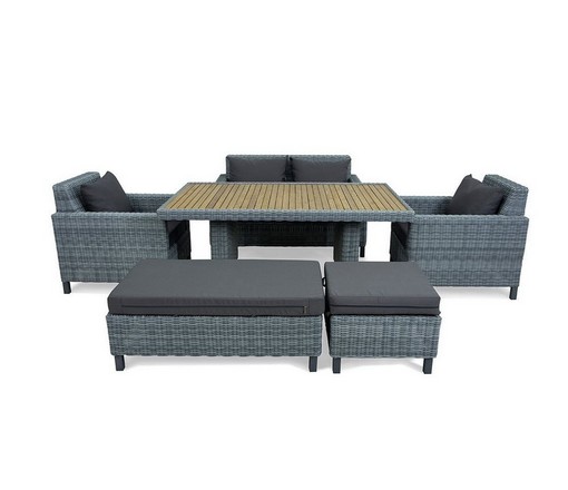 Материалы изделия: сталь (каркас, ножки), Polyrattan (лоза), лиственница (столешница).