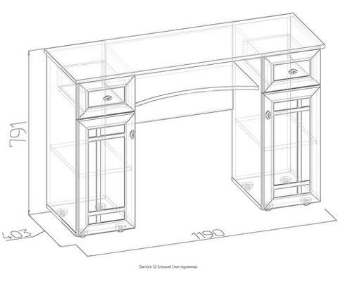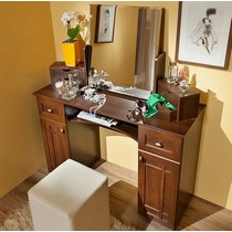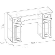 Туалетный стол оснащен двумя тумбами, двумя выдвижными ящиками и нишей под столешницей.