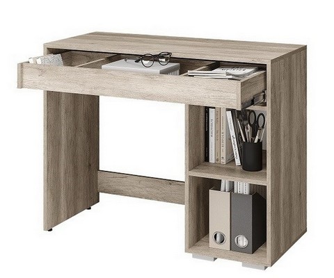 Туалетный стол с выдвижным ящиком во всю длину столешницы и двумя закрытыми нишами для хранения.