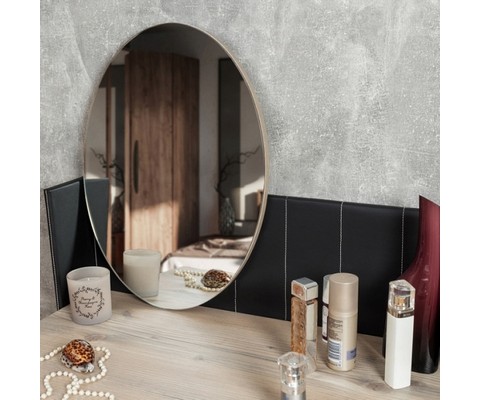 Зеркало проклеено с оборотной стороны специальной защитной пленкой, которая не позволит осколкам упасть в том случае, если зеркало разобьется.