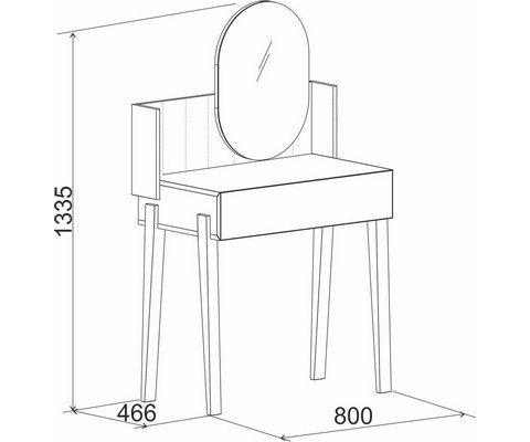 Материалы: ЛДСП, кромка ПВХ 0,45 мм/ 2 мм, дно ящика ХДФО 3 мм, зеркало 4 мм.