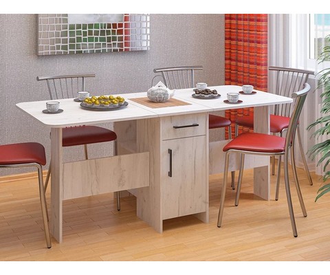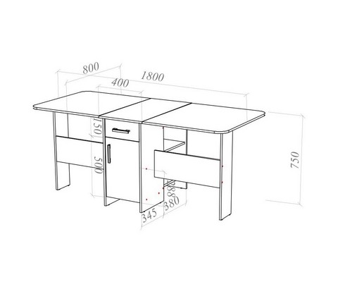 Распашные створки позволяют значительно увеличить размер стола в длину.