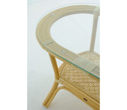 Материалы изделия:Каркас - натуральный ротанг, столешница - стекло.