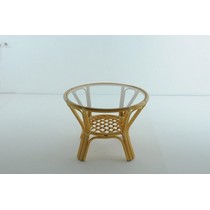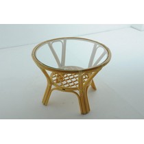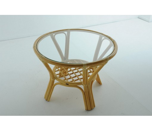 Каркас - натуральный ротанг, столешница - стекло.