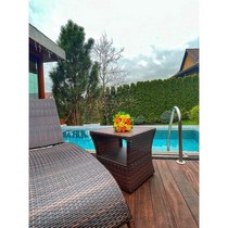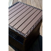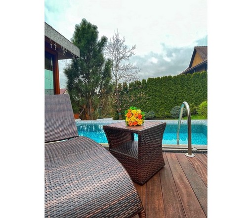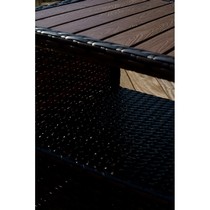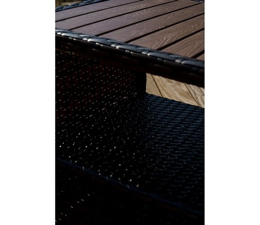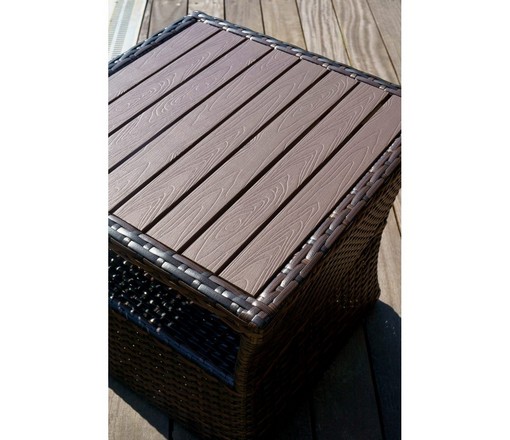 Компактный столик Бордо подходит к шезлонгам из искусственного ротанга.