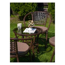Материал изделия: каркас - металл с порошковым покрытием, плетение - искусственный ротанг, столешница - закаленное стекло.