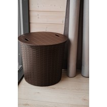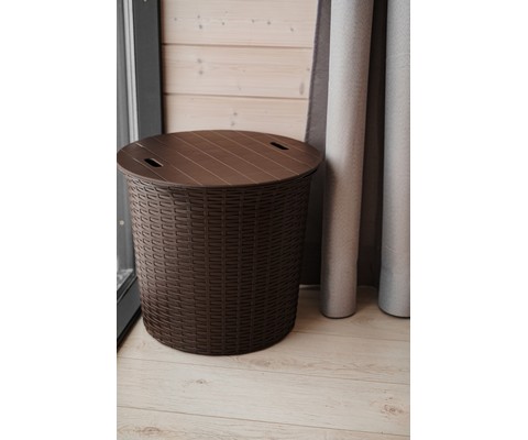 Искусственное плетение под ротанг создает природную эстетику и уютную атмосферу.