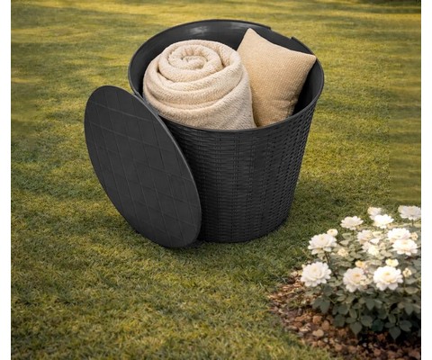 Искусственное плетение под ротанг создает природную эстетику и уютную атмосферу.