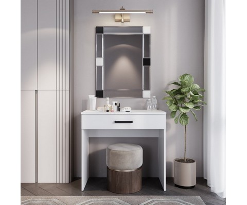 Туалетный стол Фьюжн СТ-02 имеет компатные размеры, посему позволит Вам организовать женский уголок даже в небольшой спальне. В выдвижном ящике поместится косметика, аксессуары и другие личные вещи.