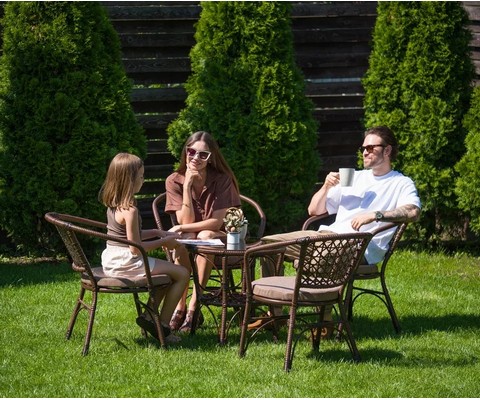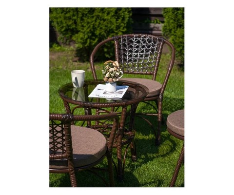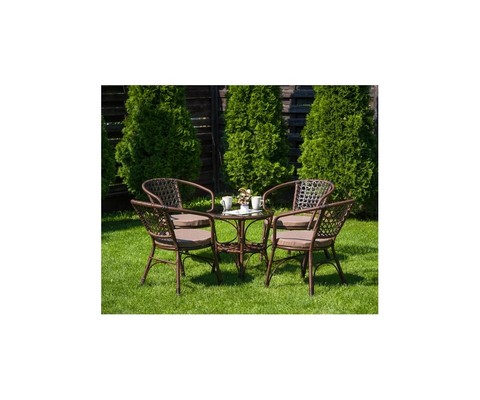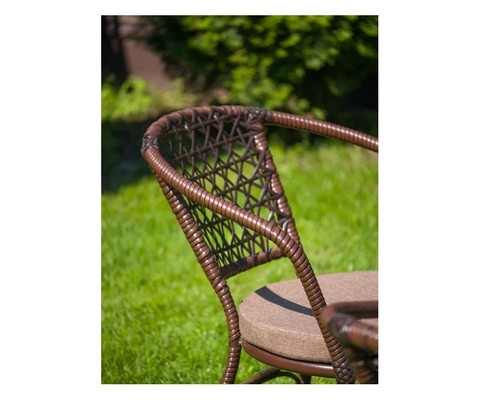 Изящная оплетка спинки, подлокотников и ножек из искусственного ротанга придает стулу изысканный вид и приятную на ощупь текстуру.